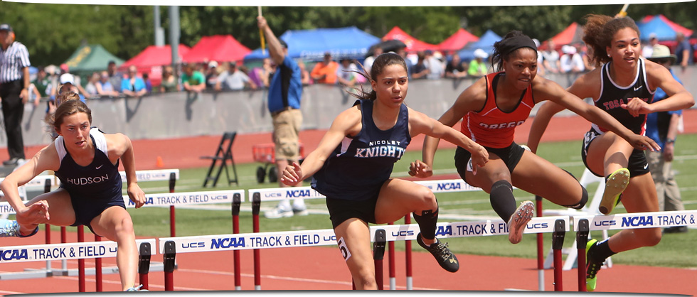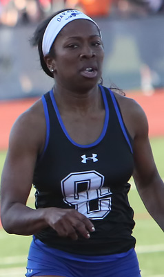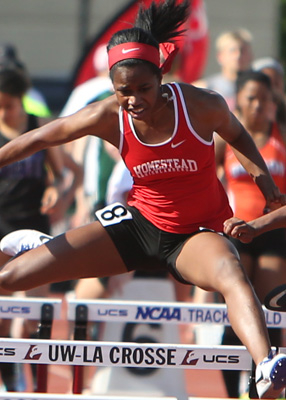Left: Gold Medal winner in the D1 100m HH Destiny Huven [Nicolet, 14.70]