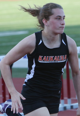 Above 300m LH athletes L-R: Michaela Pryor [Waukesha North, 5th], Kaukauna's Jessica Buss [7th], and Jazmin Washington [Oak Creek, 8th].