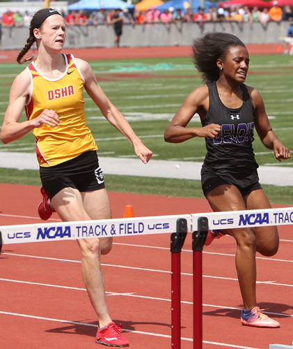 Above 100m HH athletes L-R: Allysin Booth [Clintonville, 3rd] and Freedom's Jordan Mashlan [4th].