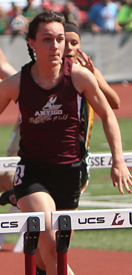 300m LH athletes L-R: Hannah Zenkovich [Antigo, 4th] and Zenkovich and Baumgartner in the prelims.