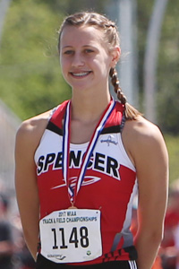 High jump athletes below L-R: Hannah Zastrow [Spencer, 4th], Rachel Ohde [McDonell Central, 5th] and Katie Stegman [Suring, 6th].