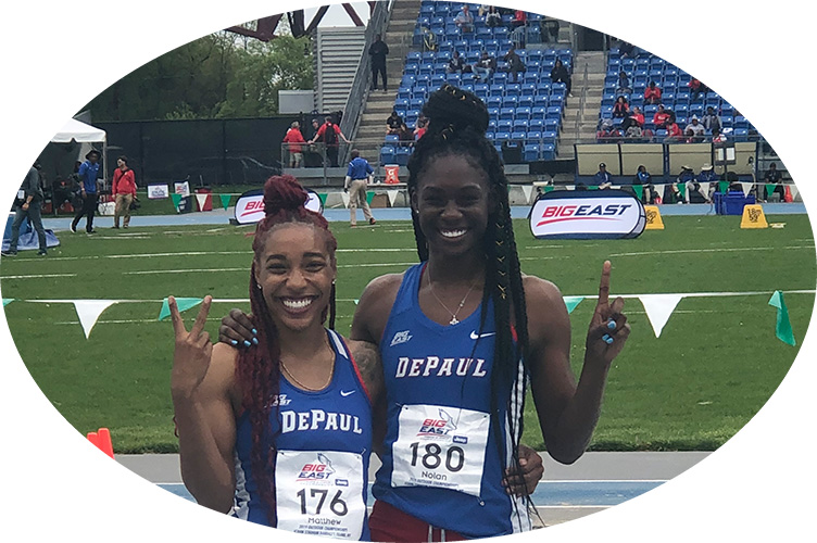 Sydnee Matthew[176] former Milwaukee King standout and Jade Nolan a Milwaukee Madison Graduate and WIAA D1 LJ record holder are shown at the Big East Championships on May 10, 2019, at Ichan Stadium in Randall's Island, NY. Both athletes compete for the De Paul Blue Demons. Jade [19' 04.50] and Sydnee [19' 00.00] finished 1-2 in the LJ event.Photo by Calvin Matthew. |