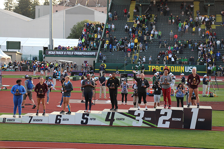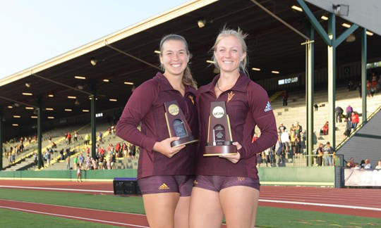 Sam Noenning shown with teammate Maggie Ewen, who won the shot put event and holds the NCAA record | ||