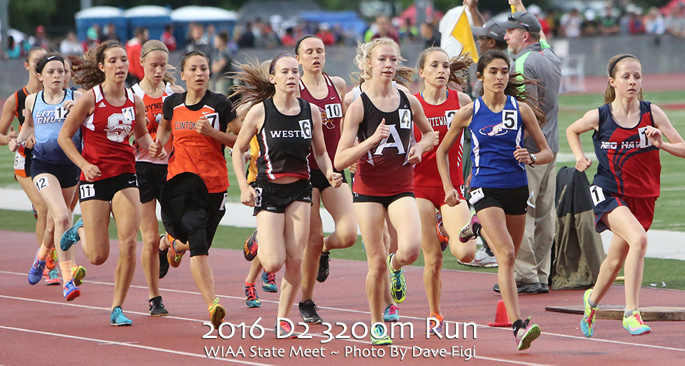 Amery runner [Class of 2016] Alicia Monson [#4] is shown in the 3200m run on Friday, June 3, 2016 at the WIAA State Meet. She won the Gold Medal in that race posting a 10:40.16. The 2016 Meet had many highlights in the running events. |