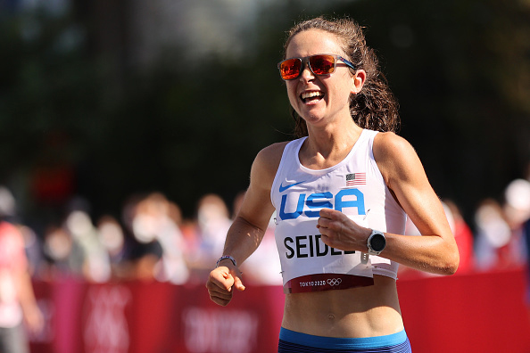 Former University Lake School [Class of 2012] runner Molly Seidel is shown above as she finished third in the Tokyo 2020/21 Olympics marathon to win the Bronze Medal. The marathon was held on the final day of the Olympics on August 7, 2021. Photo by Clive Brunskill/Getty Images - Used with permission. | ||