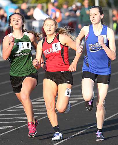 | Reghan Komprood in the 1600m at the 2017 WIAA State Meet | Reghan Komprood at the 2017 Midwest Invitational | |