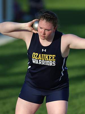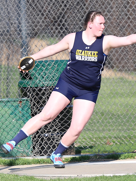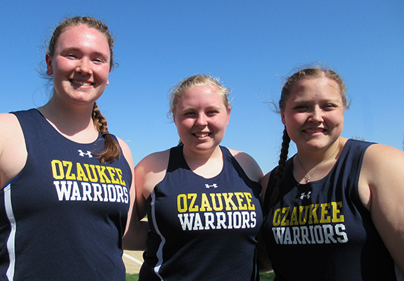 | Ozaukee throw team members L-R: Emma Richards, Mayzie Dotson, and Caryn Hamm. | ||
