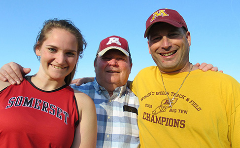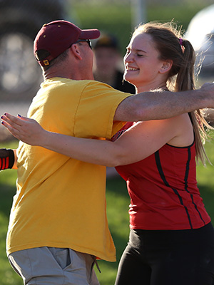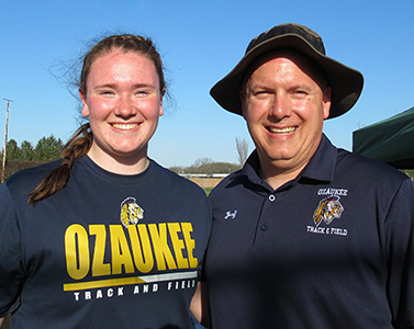 | Above left: Ozaukee throws coach Bill Rchards and his daughter Emma. Above right: Eve Goldstein and her grandfather Duane Burmeister and father Chad. | ||