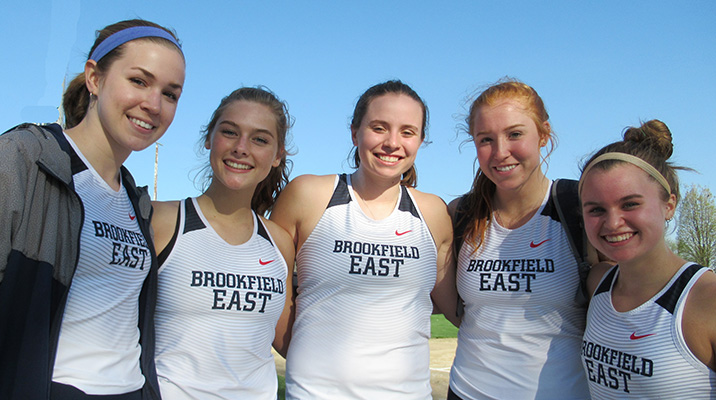 | Brookfield East throw athletes L-R: Claudia Lecher, Olivia DeValkenaere, Lizzy Cagle, Katie Worb, and Natalie Roux | ||