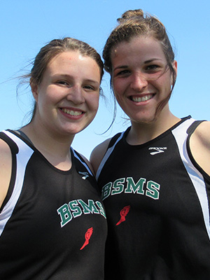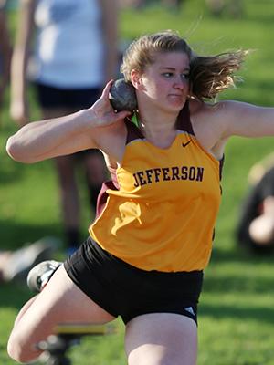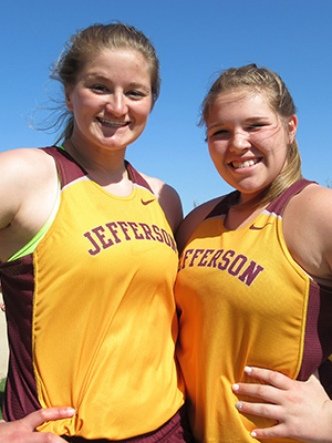 | Above throw athletes L-R: BSMS teammates Megan Greenfield and Brianna Leahy, Greenfield's Ratka Korac and Jayda Craig, and Jefferson teammates Emily Stendel and Kayla Kloss. | ||