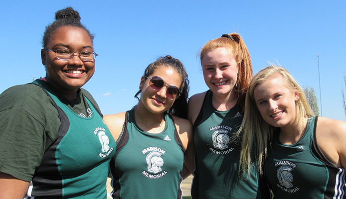 | Madison Memorial throw team members L-R: Reete Thorns, Cynthia Rosales, Abbey Maier, and Elle Kinney. | ||