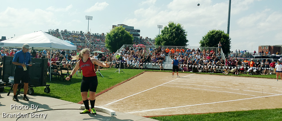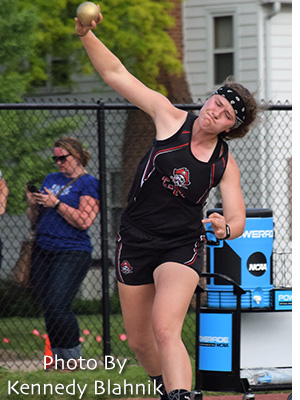 | Brandon Berry's photograph captures one of D2 Shot Put Champion Eve Goldstein's throws | ||