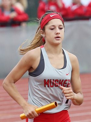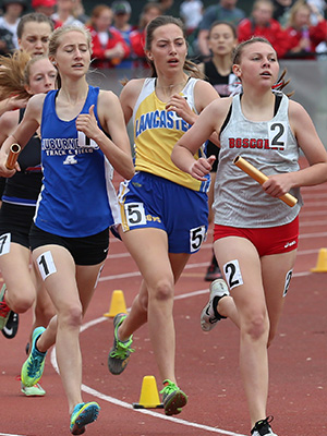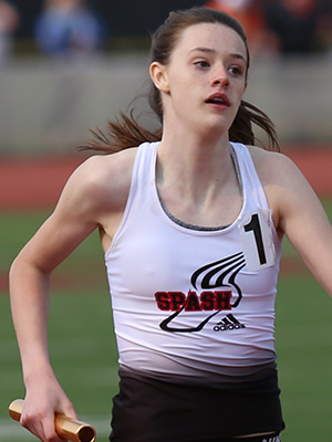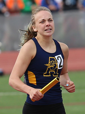 | Macie Schmeiser led off the winning Auburdale 4x8. |