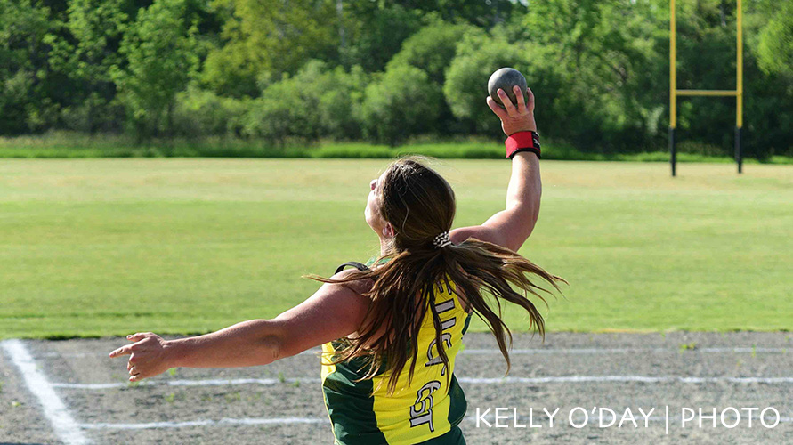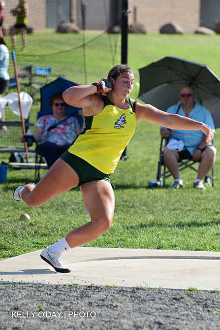 | Senior Danni Langseth from D. C. Everest is shown in a shot put sequence Photos by Kelly O'Day. |