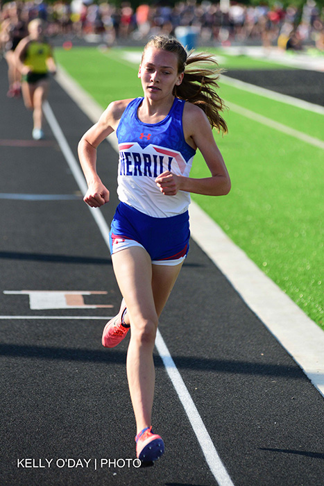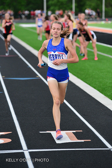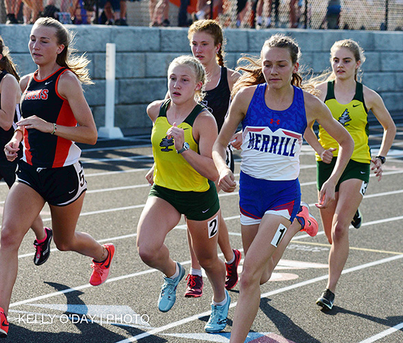 | Junior Elizabeth Schmidt from Merrill has been a standout in the distance races this season. She won the 1600m in 5:00.54 and then later in the meet posted a 2:18.16 to win the 800m run event. At the end of the meet Schmidt anchored the Merrill 4x4 to a 2nd place finish. | ||