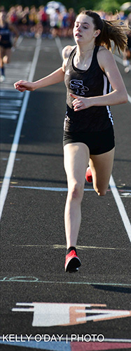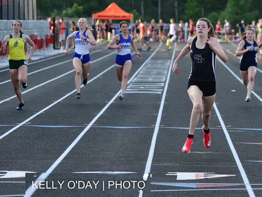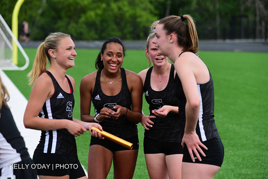 | Anchor Roisin Willis took the baton from Hailey Abbott in the 4x4 with SPASH in 6th place. Similar to her 2019 WIAA State Meet anchor leg in the 4x4 [taking the baton in 5th place at La Crosse and then finishing 1st to give SPASH the 2019 WIAA D1 4x4 title] Willis brought home the win for Stevens Point edging out Merrill 4:14.50 to 4:16.30. A coach had an unofficial lap time for anchor Elizabeth Schmidt of 2nd place Merrill of 60 seconds giving an indication of what Willis ran on her anchor lap. Note-Some coaches had the Willis split somewhere between 52.9 and 53.1. | ||