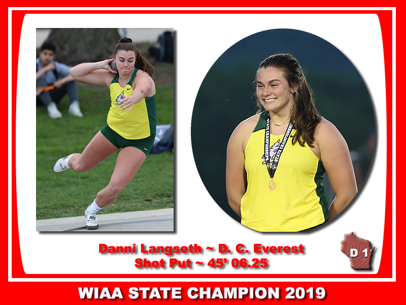 2018 Wisconsin Valley Conference Meet: 2nd in the SP and 2nd in the discus. 2020 Wisconsin Valley Conference Meet: Season canceled. 2020 WIAA State Meet: State Meet Canceled |