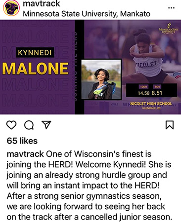 | Nicolet's Kynnedi Malone To Attend Minnesota State University, Mankato |